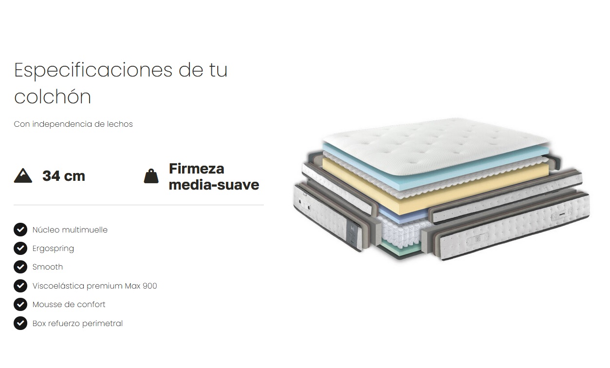 | Tamaño | 90×190, 90×200, 105×190, 105×200, 135×190, 135×200, 150×190, 150×200, 160×190, 160×200, 180×190, 180×200, 200×190, 200×200 |