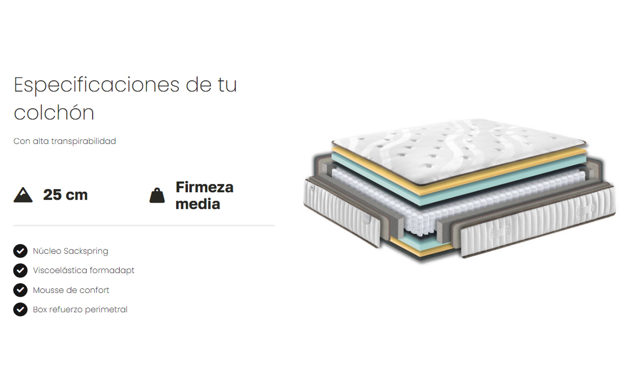Especificaciones de tu colchón